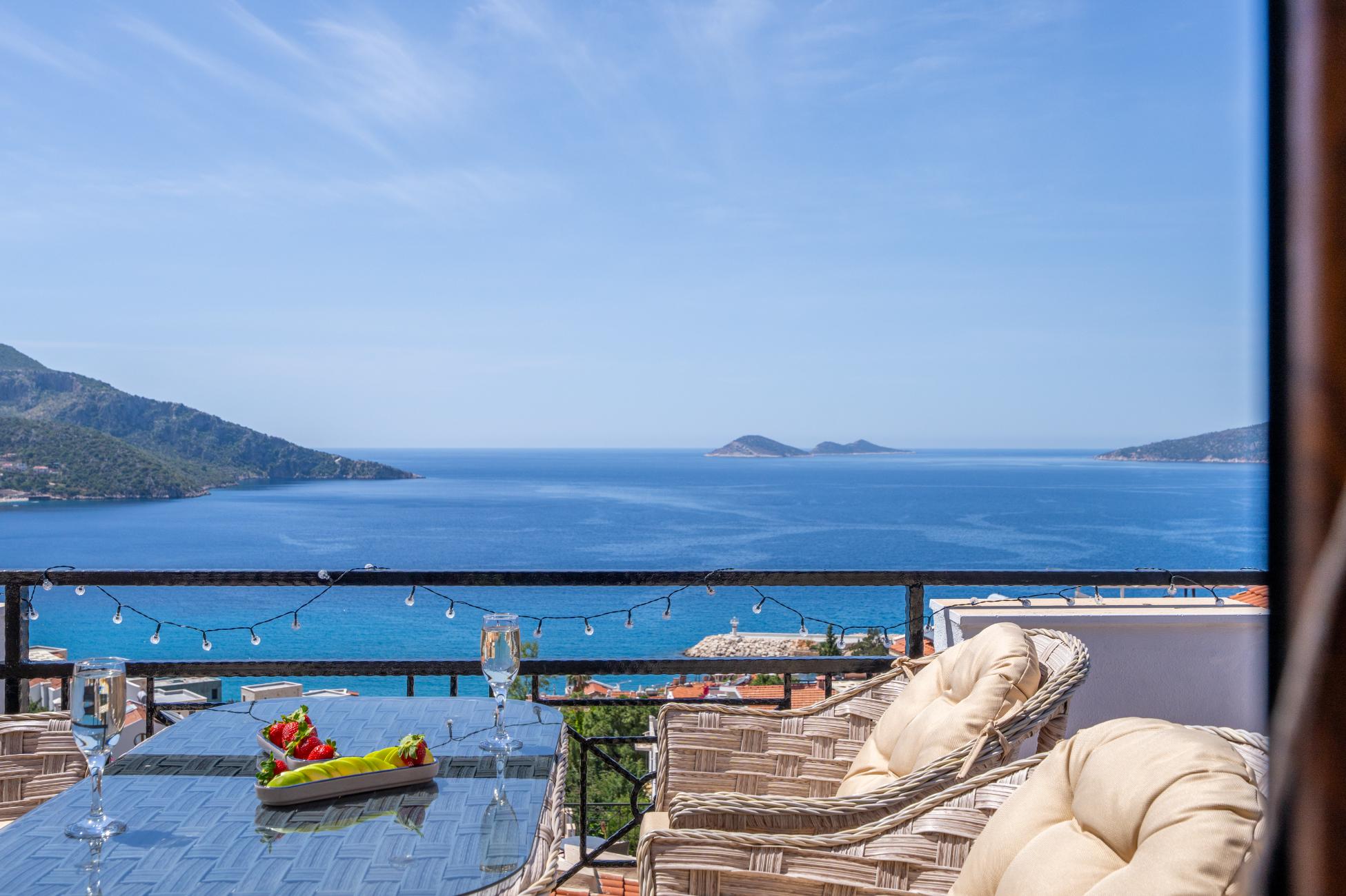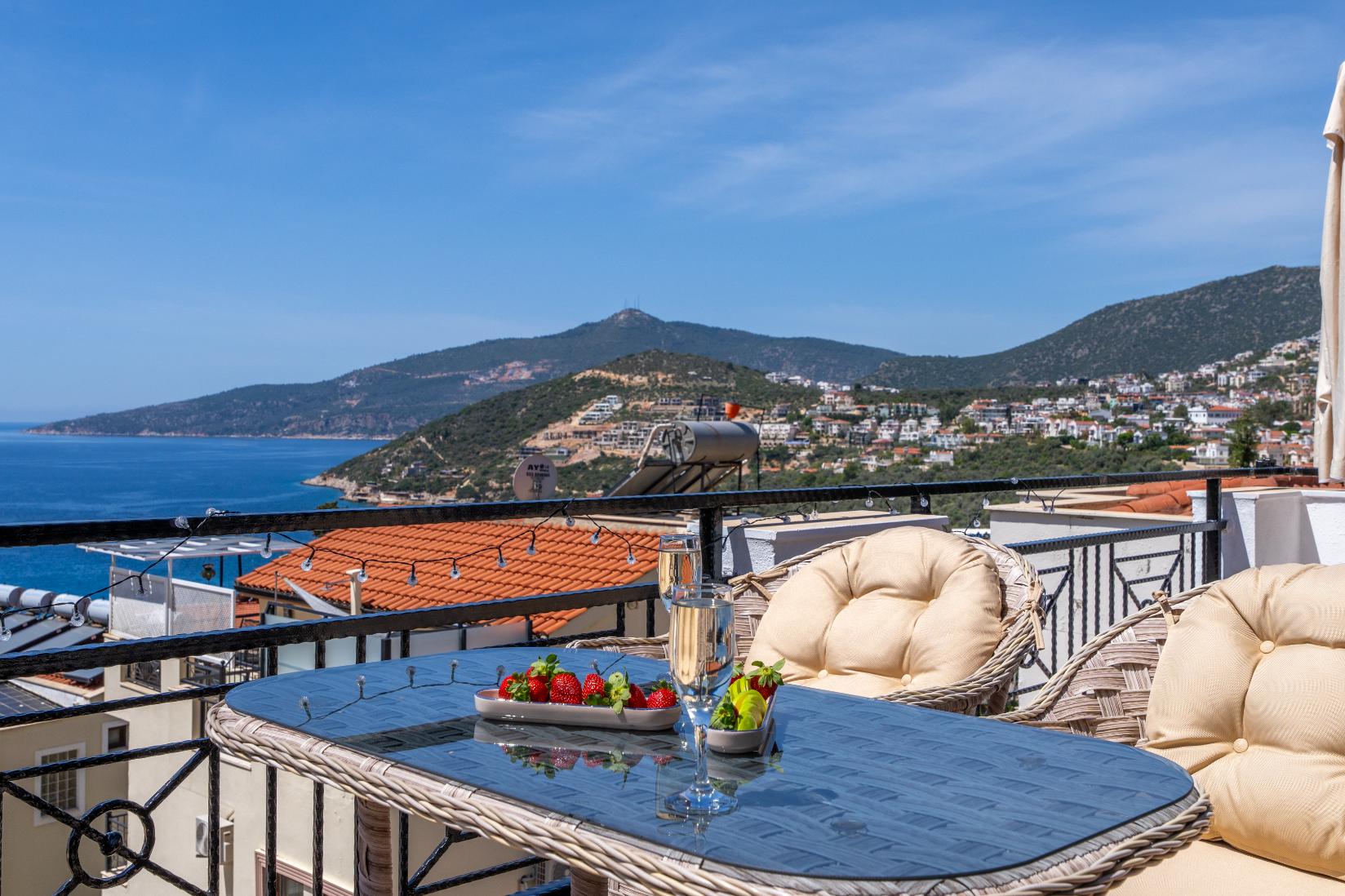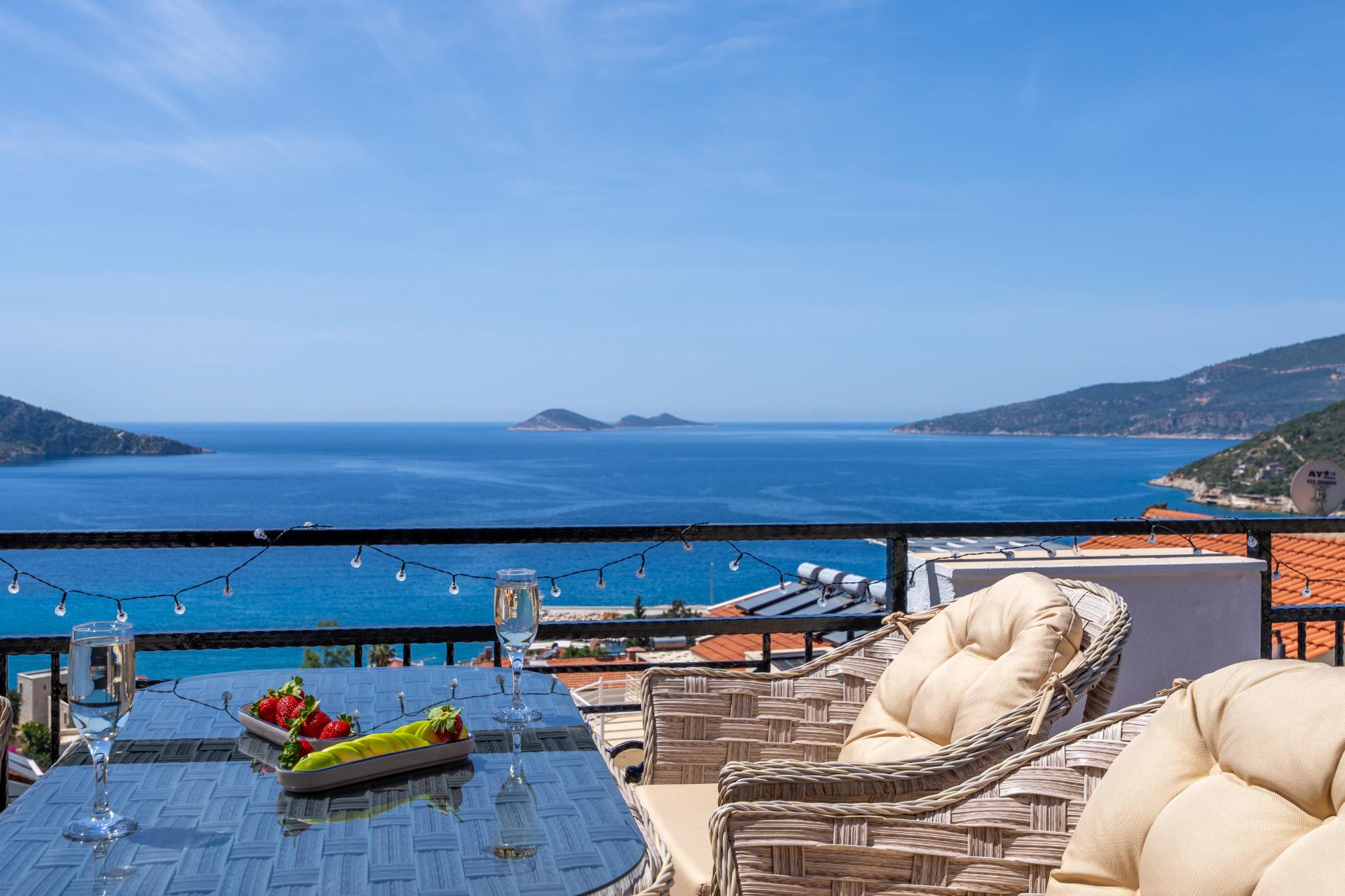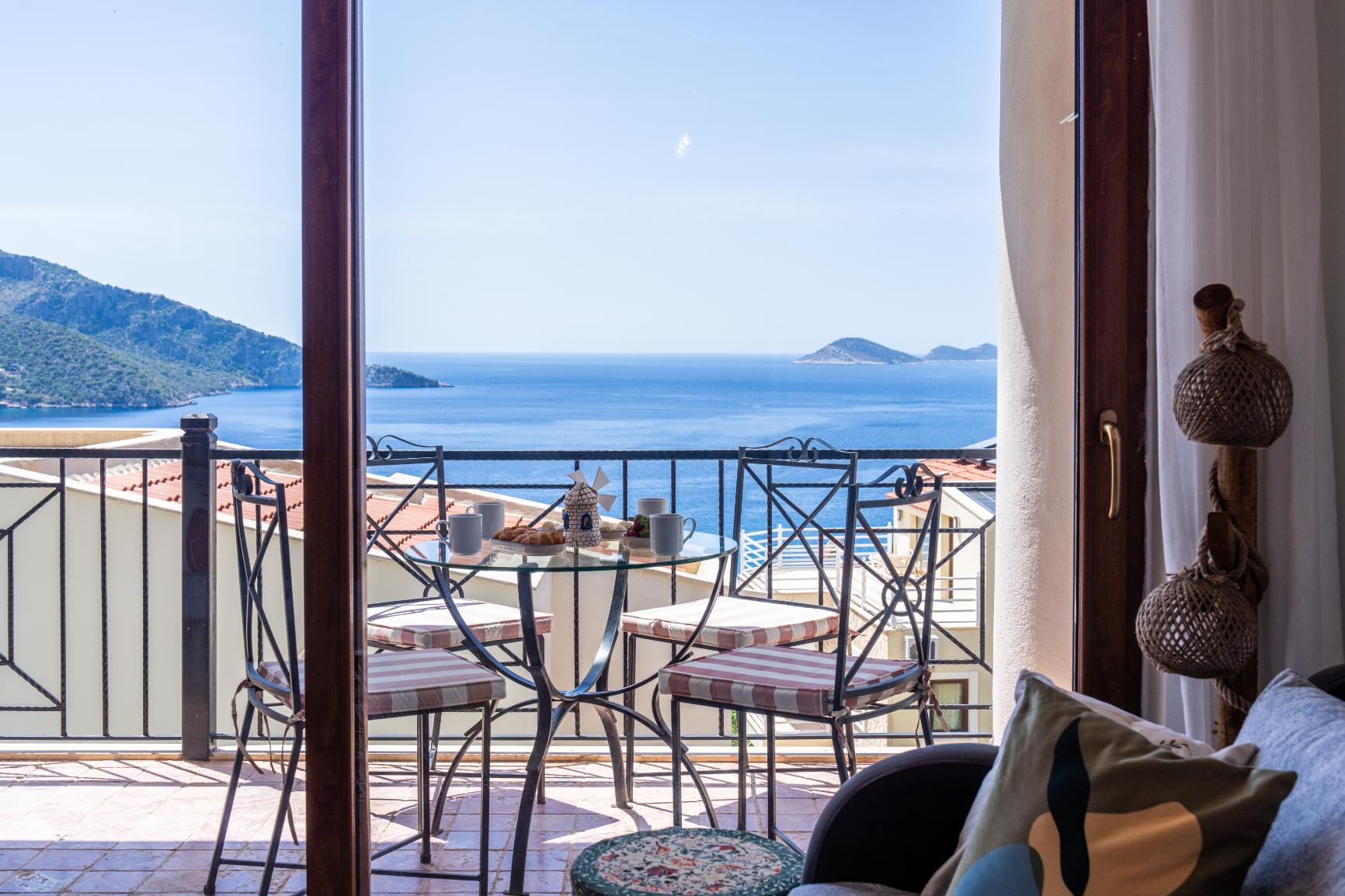 The apartment offers panoramic sea views from every room, which all have private balconies from which to enjoy one of the best views in Kalkan.