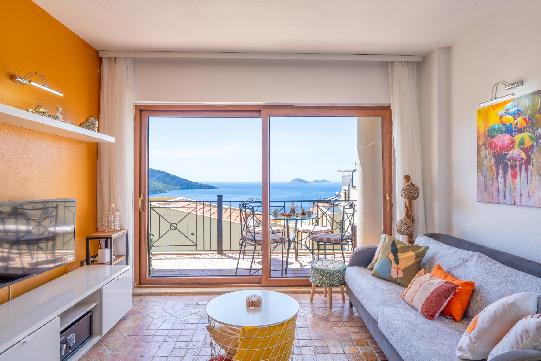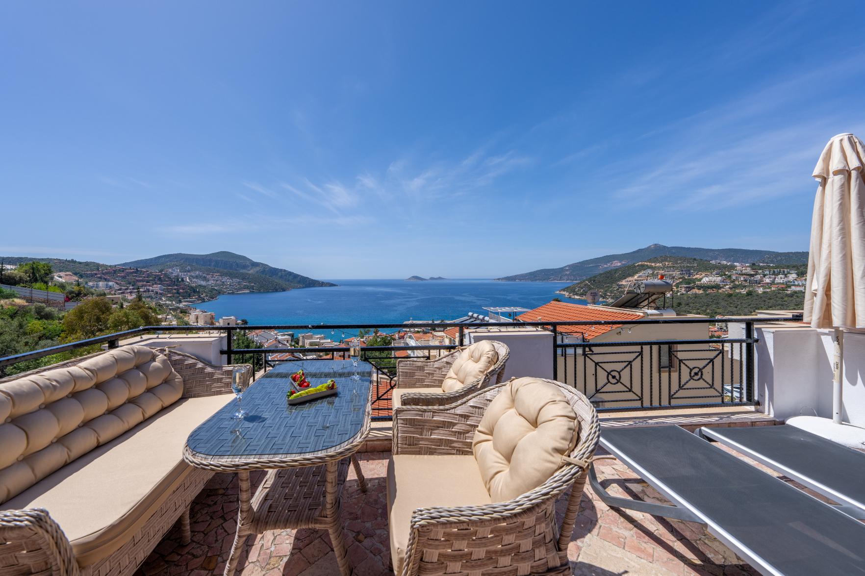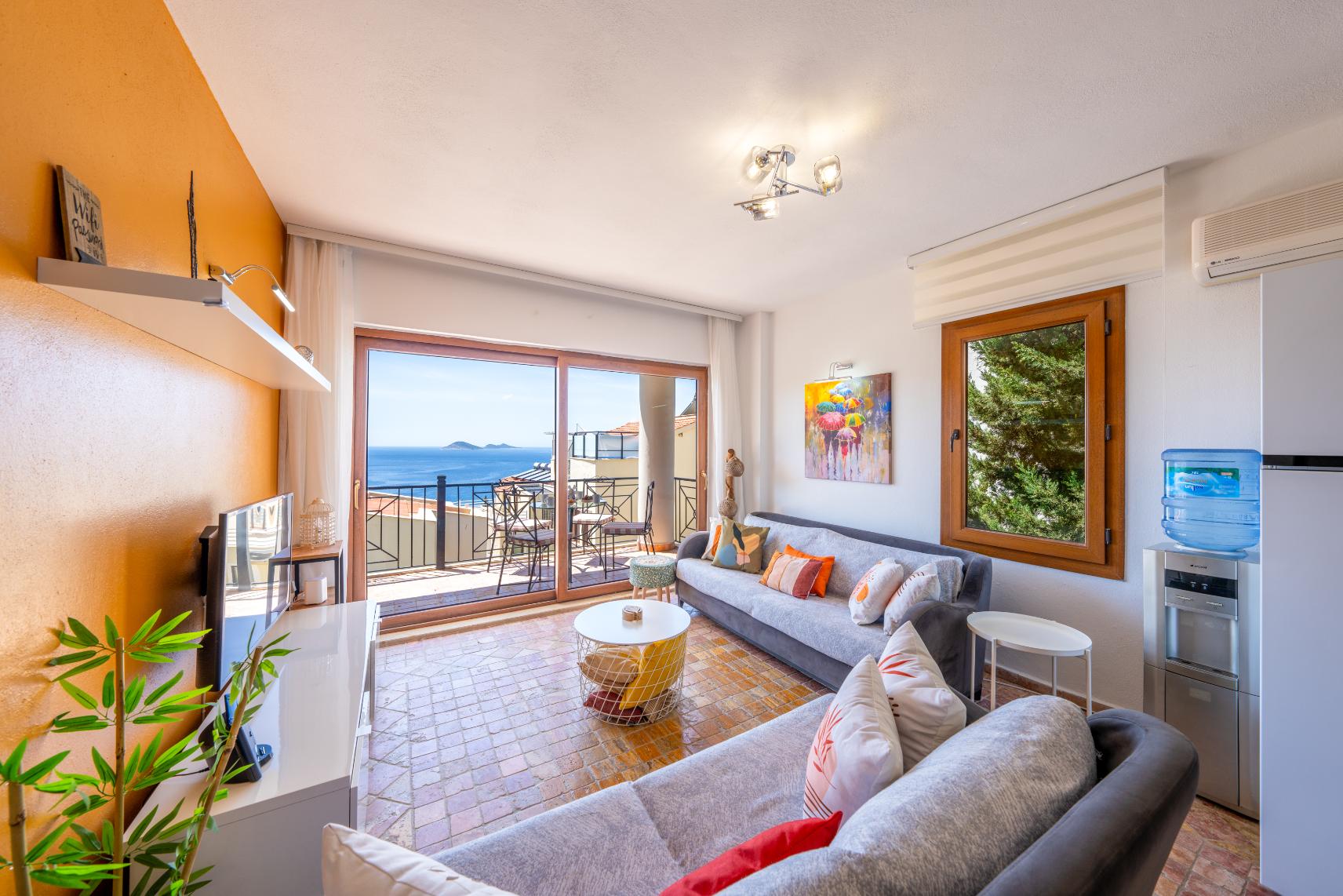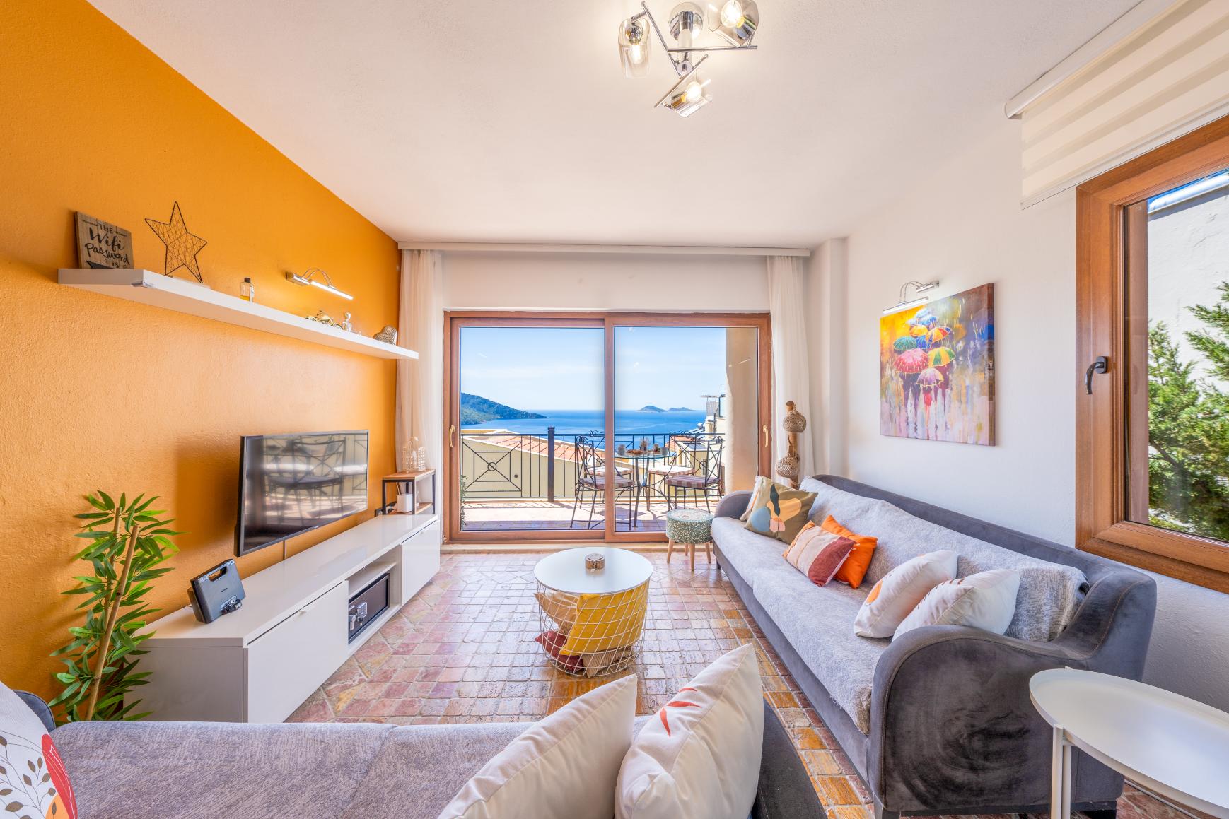 The apartment offers panoramic sea views from every room, which all have private balconies from which to enjoy one of the best views in Kalkan.