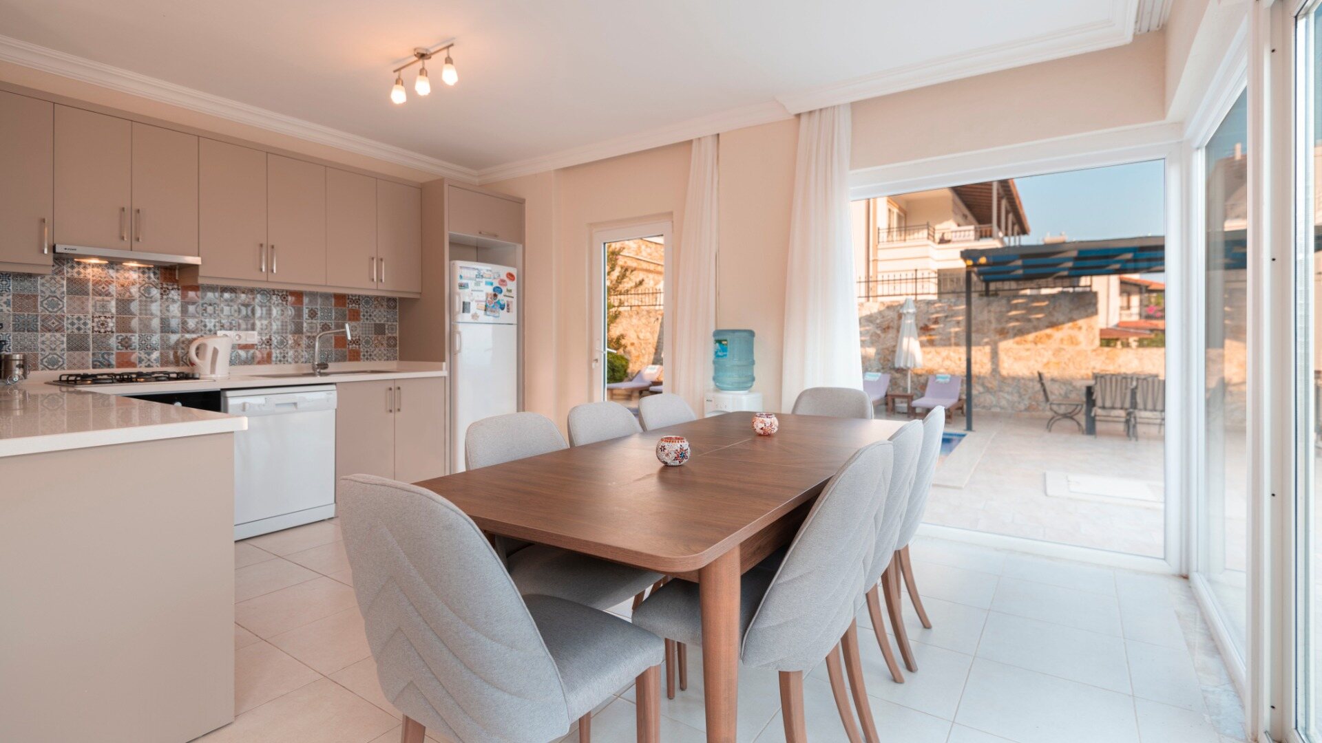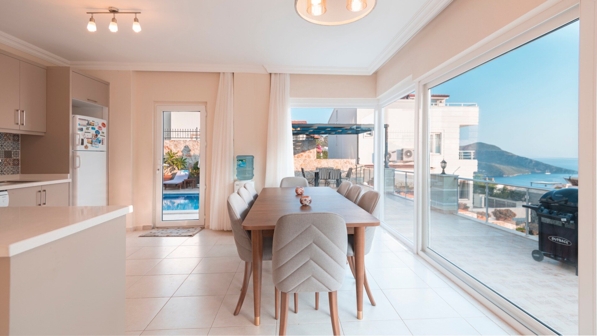 Double patio doors lead out onto the pool terrace.