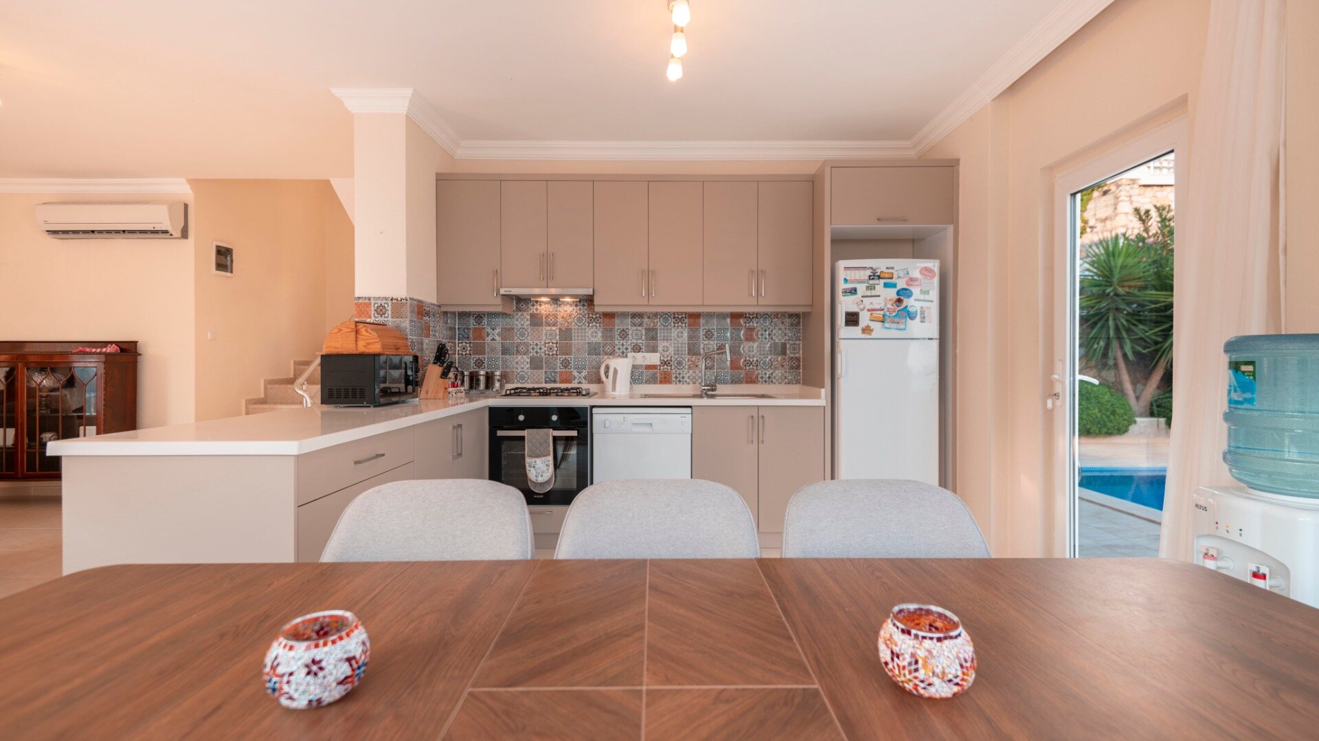 - The villa is fully air-conditioned
