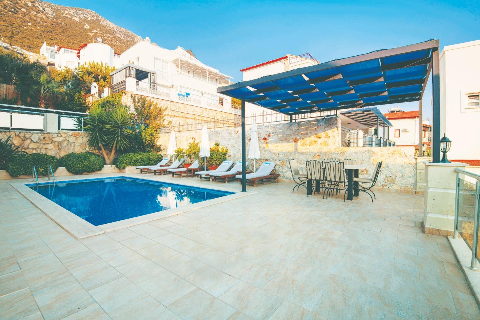 Villa CirCis is a spacious, 4 bedroom holiday villa which can comfortably accommodate up to 7 guests. It’s in an excellent location on a peaceful hillside, yet it’s within 10-15 minutes walking distance of Kalkan’s Old Town.