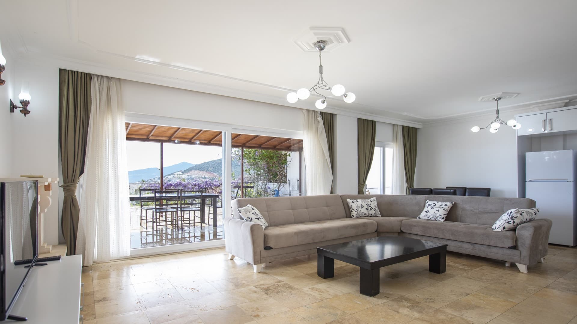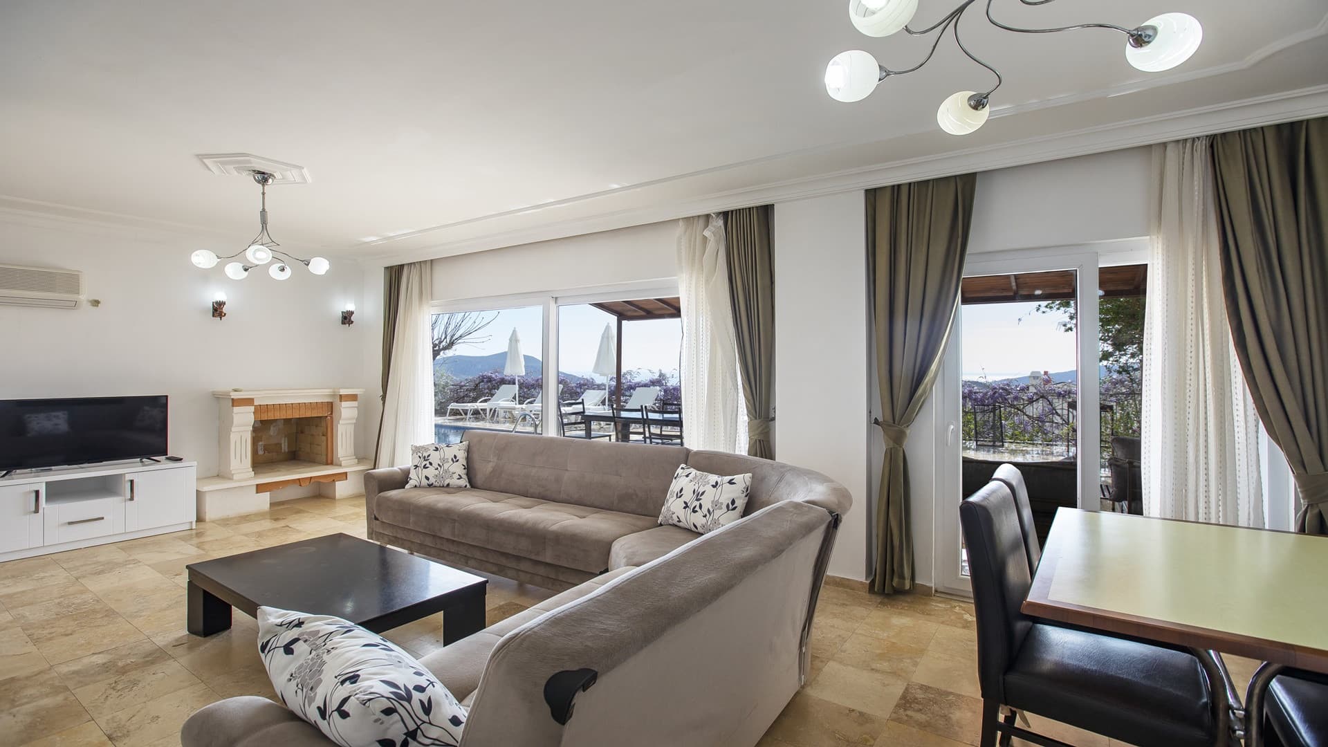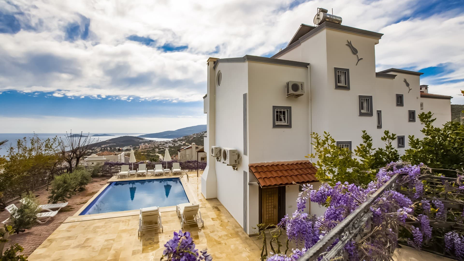 The villa sleeps 7, is stylishly furnished and has stunning views over Kalkan bay.