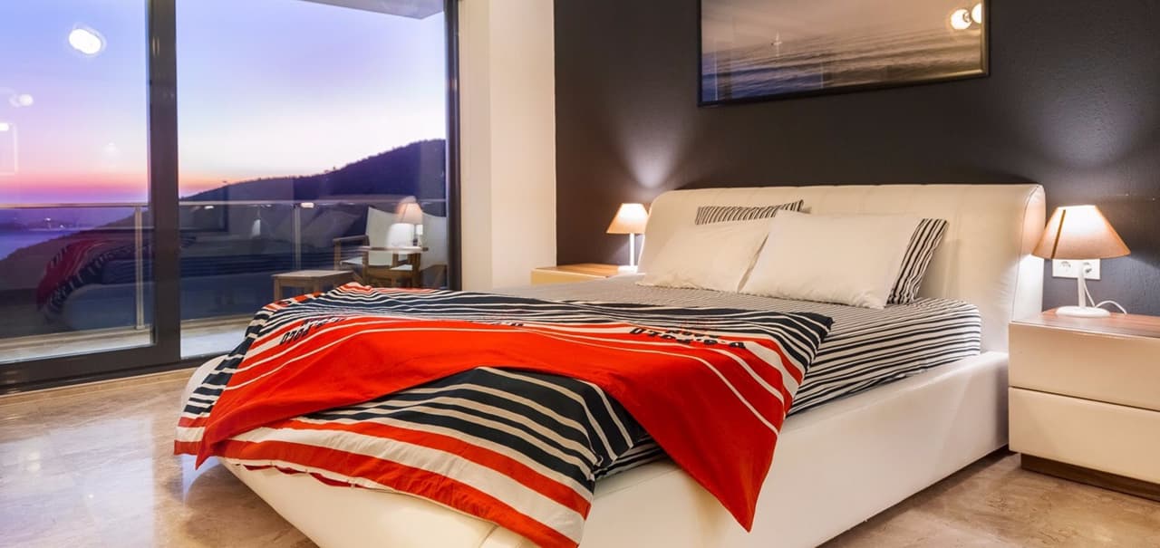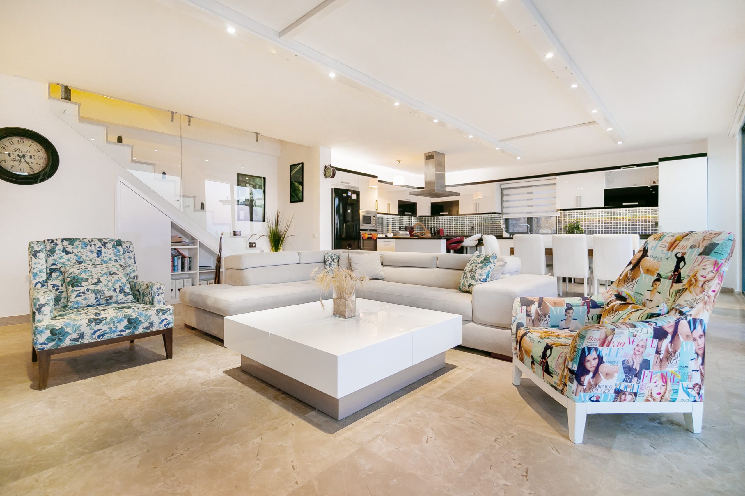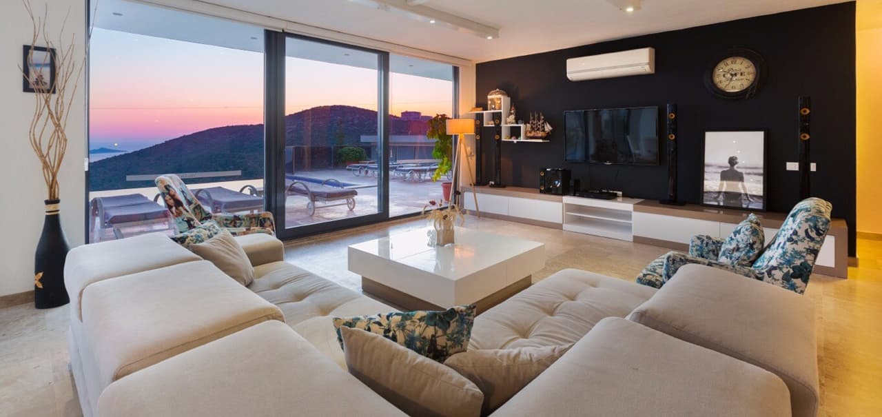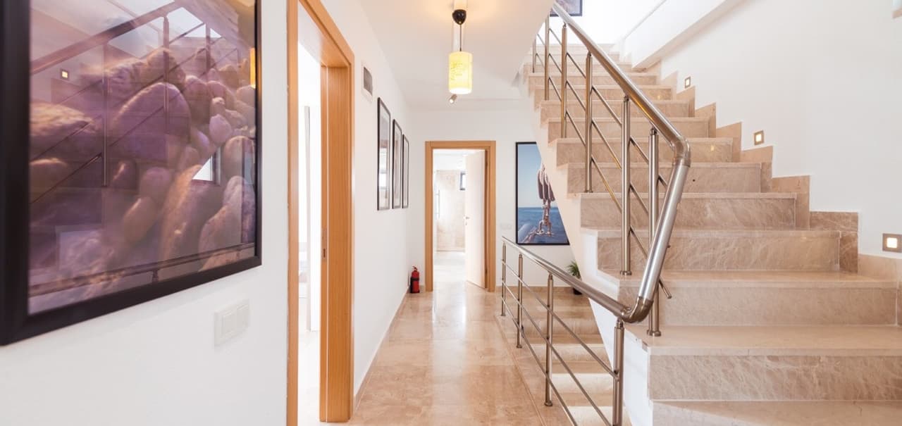 The spacious interior is light and airy with full length glass windows throughout to enhance the incredible views. The villa has and has been decorated in a modern style with contemporary furniture and fittings.