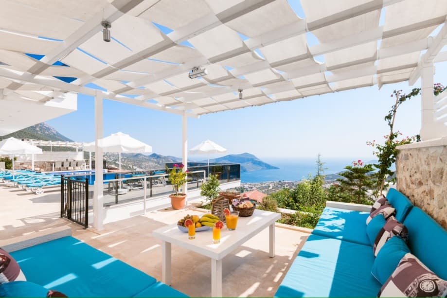 Villa Ela is a generously sized 6-bedroom villa that enjoys unparalleled sea views from its elevated position in the upper Kiziltas area of Kalkan.