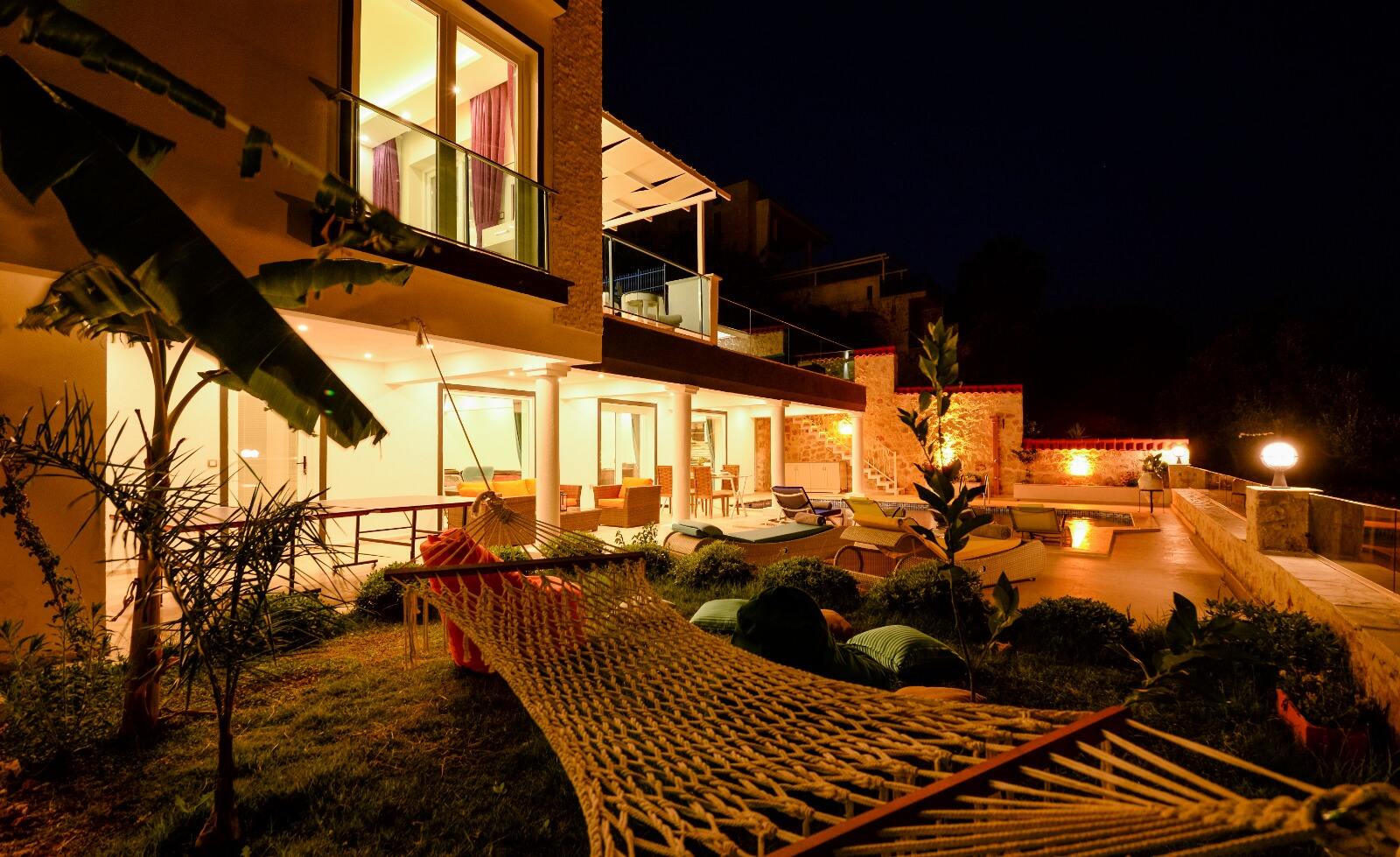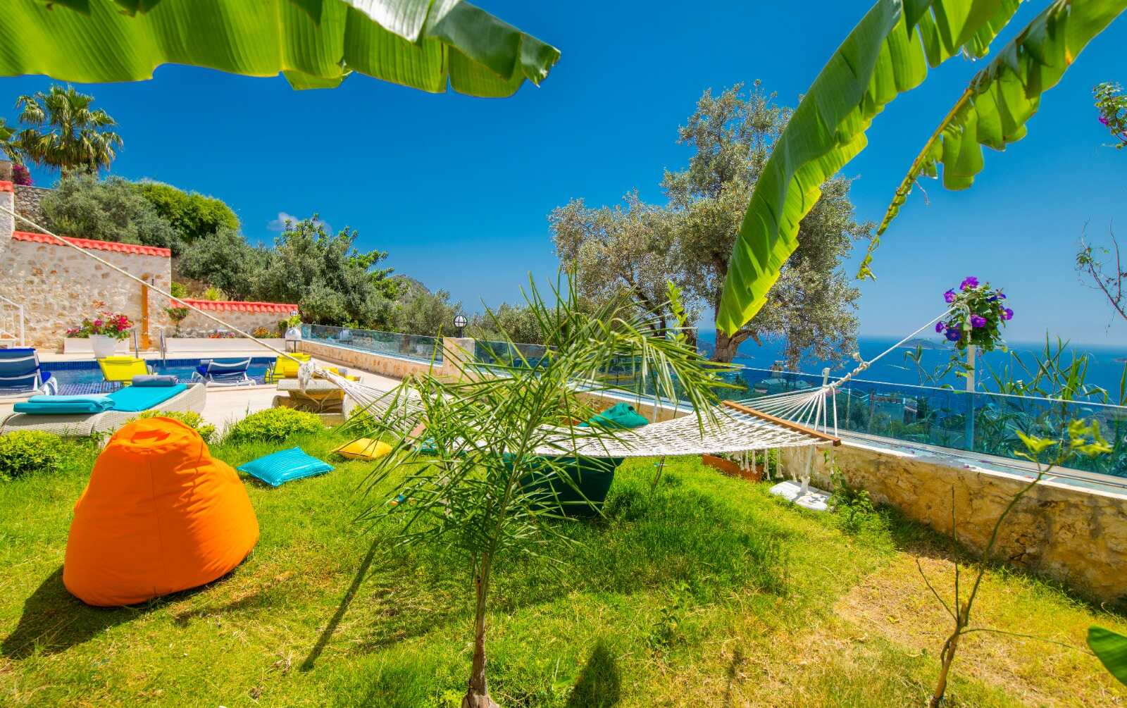 There are plenty of sun loungers and a garden with a hammock and comfy seating to enjoy the spectacular view.