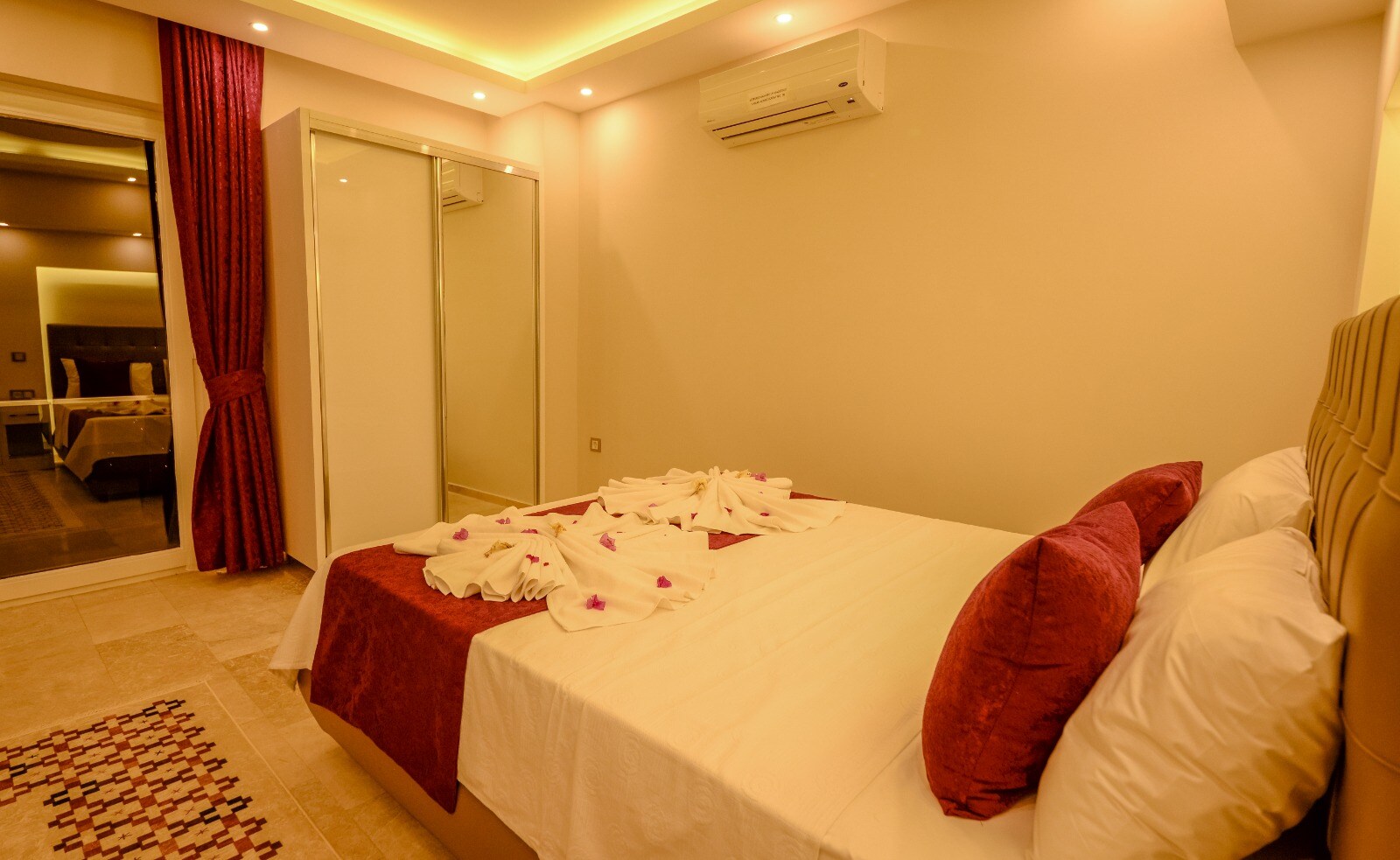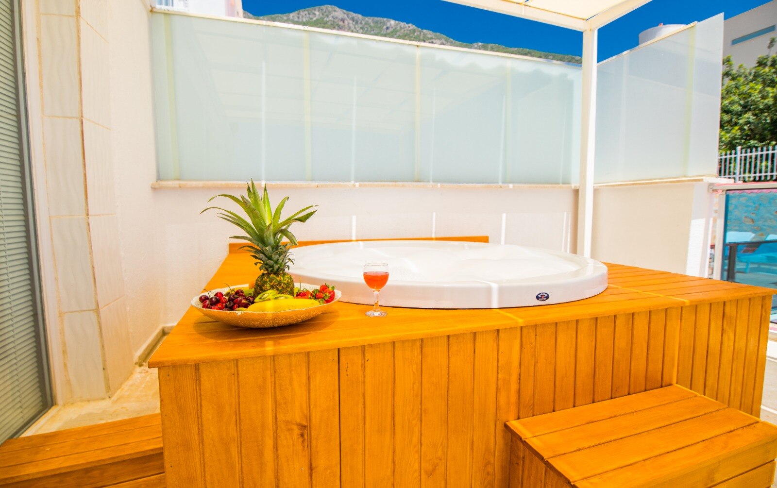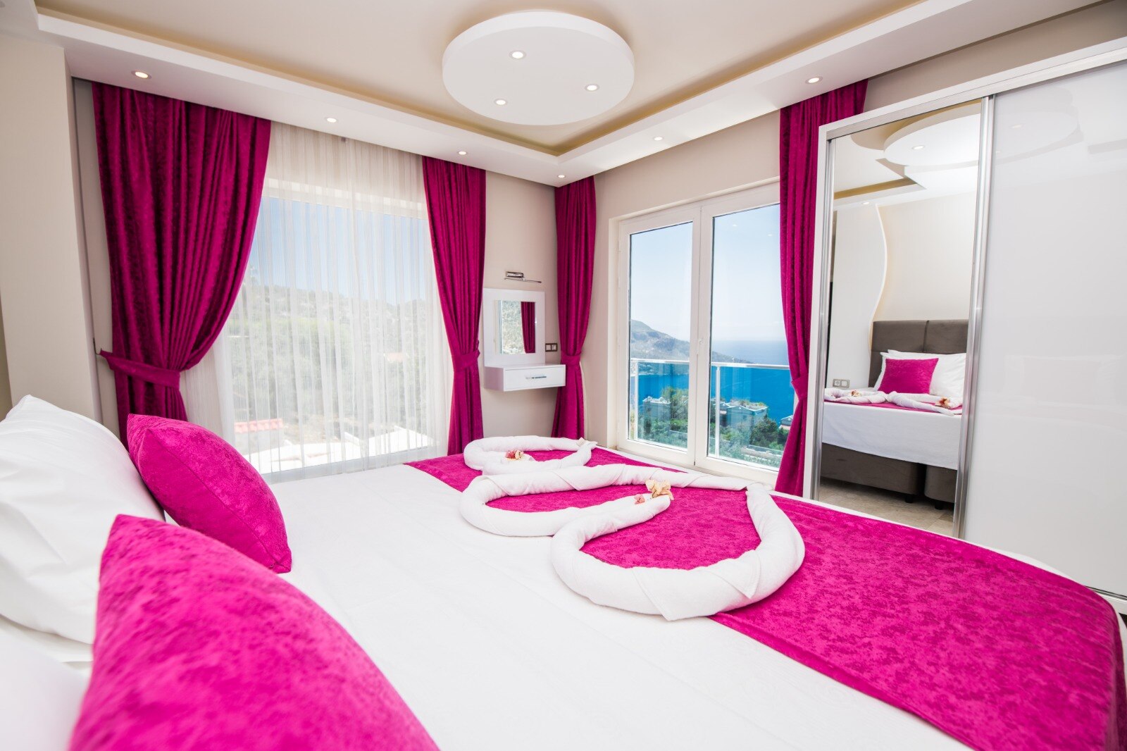 This bedroom also boasts a private balcony with jacuzzi and stunning views over Kalkan Bay.