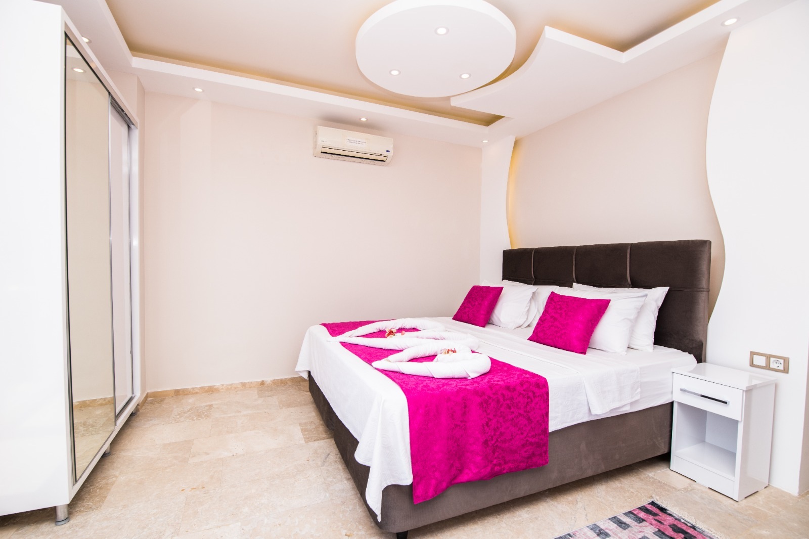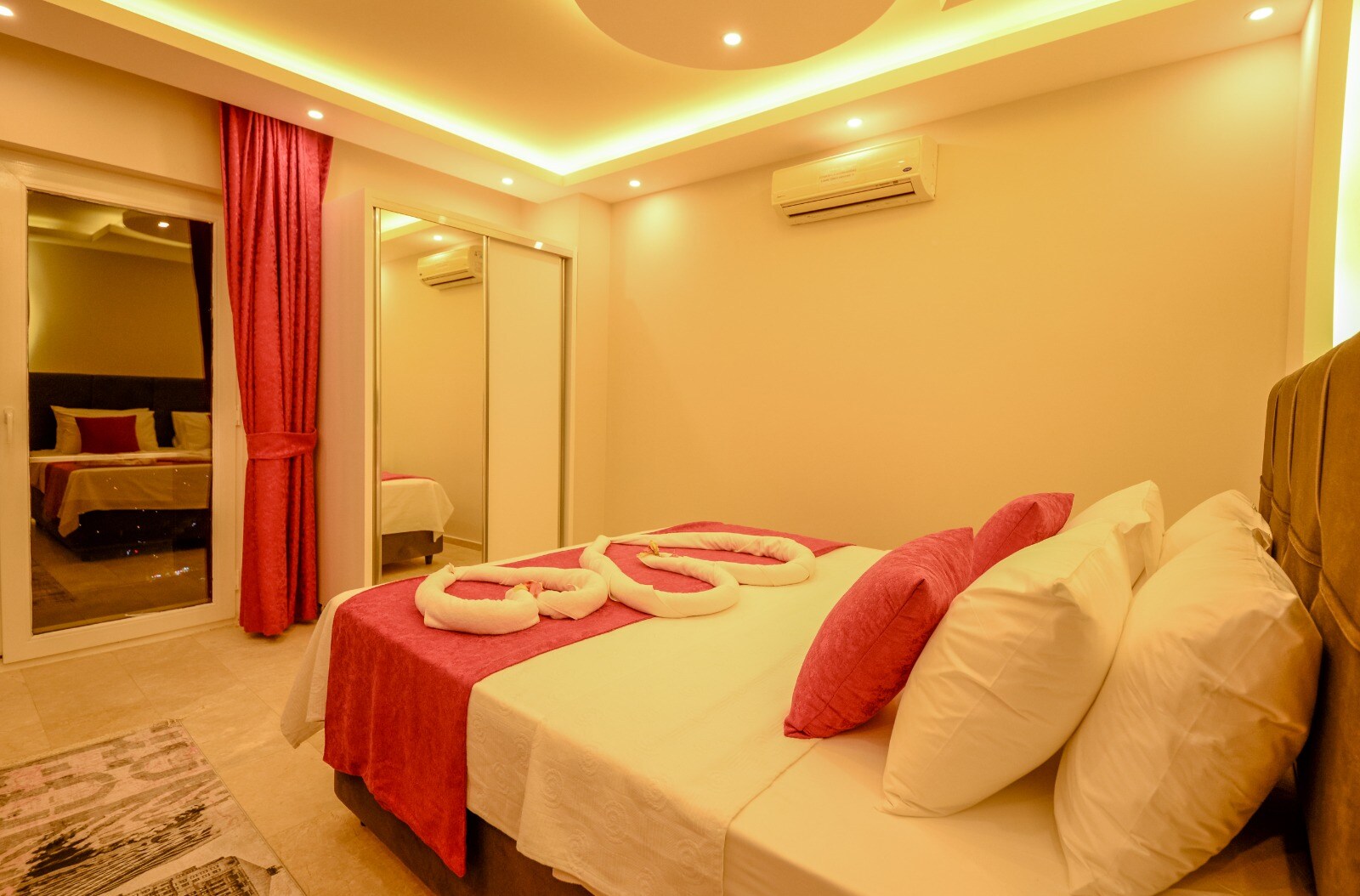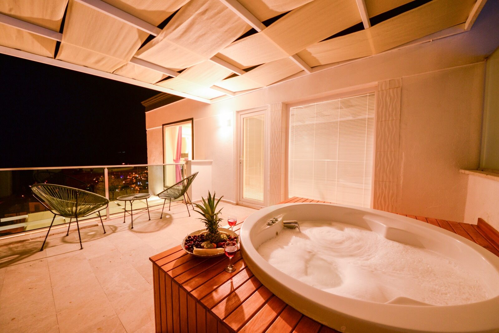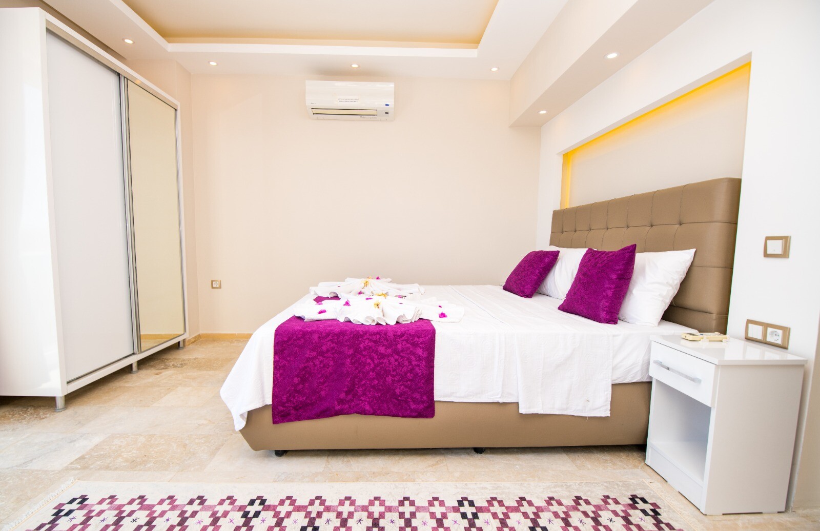 This bedroom also boasts a private balcony with jacuzzi and stunning views over Kalkan Bay.