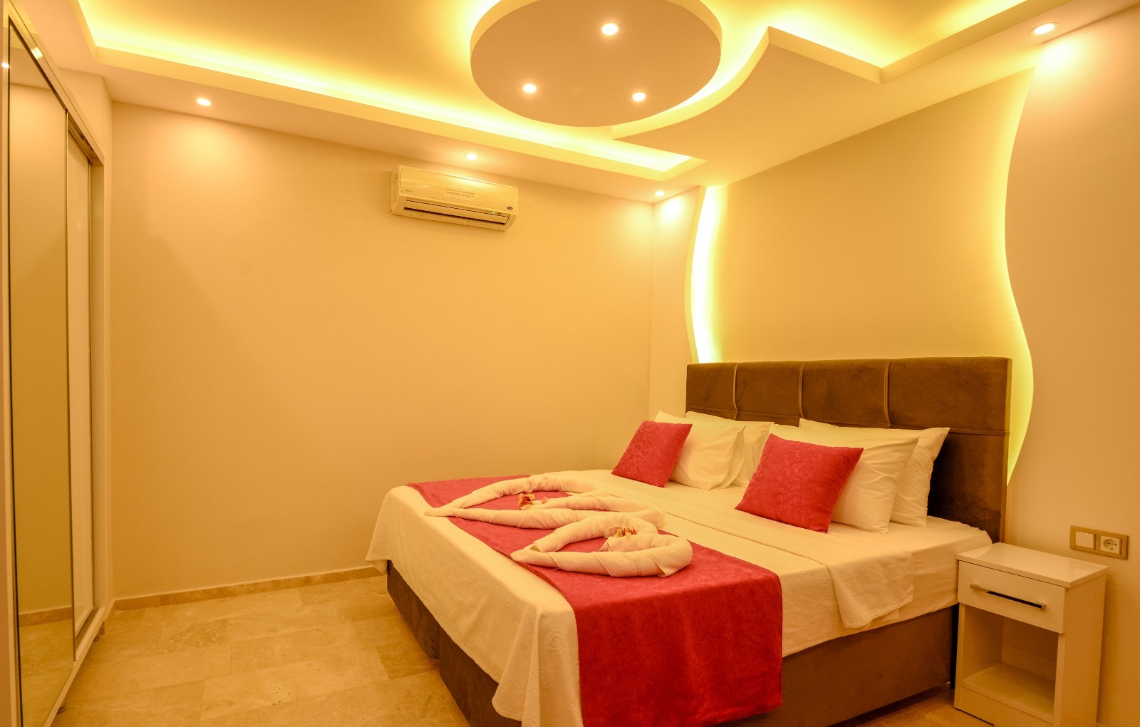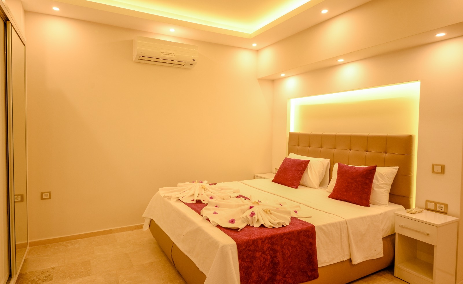 Bedroom 1; double bed, wardrobe, bedside table, air conditioning.