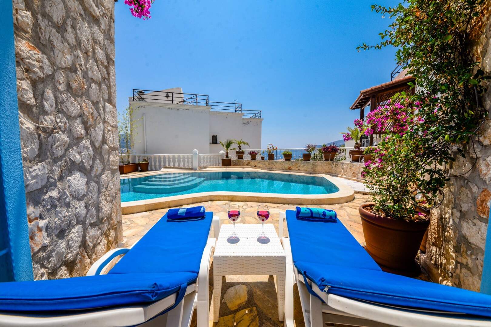Villa Kalkan Blue offers an unforgettable holiday experience with its sea view and large accommodation capacity.