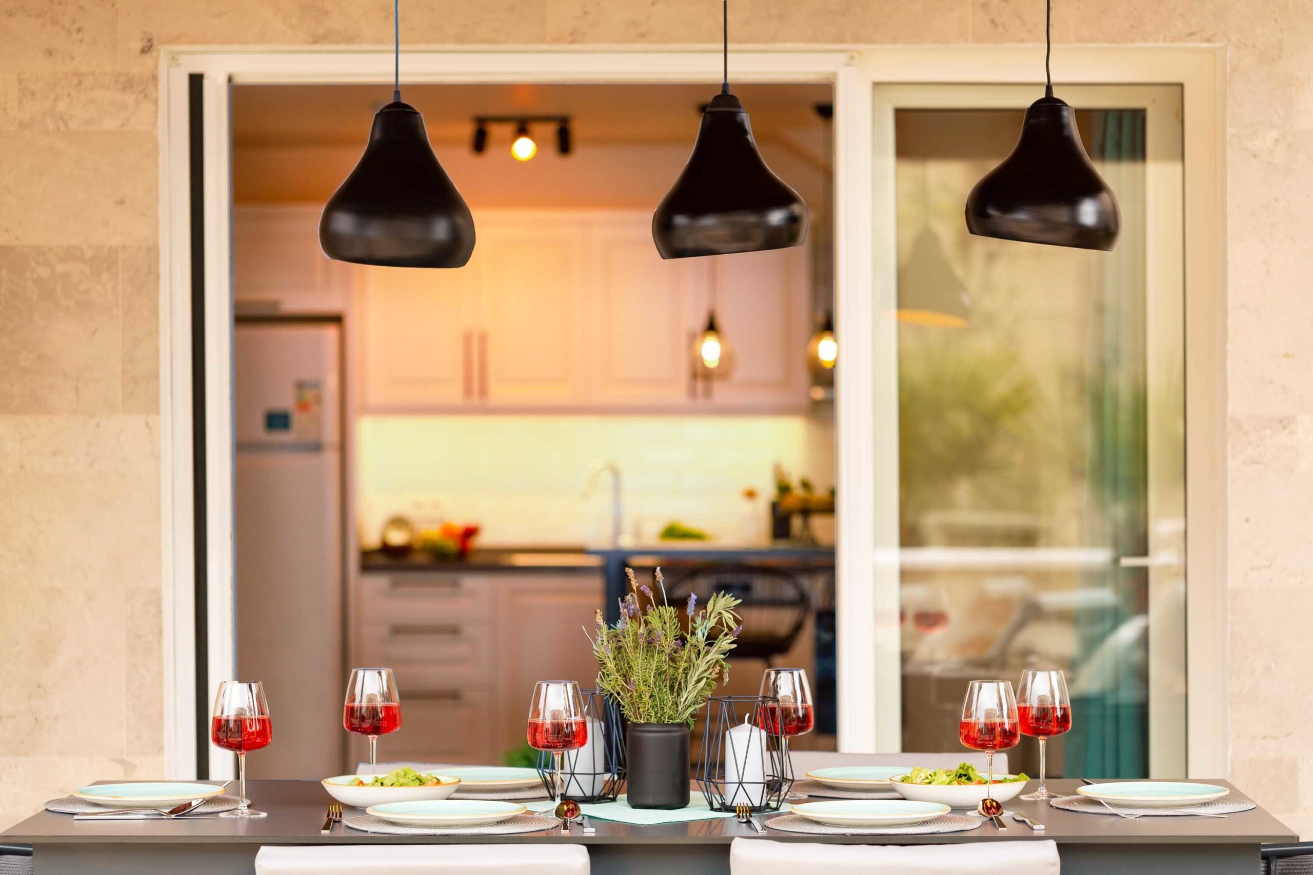 Large floor to ceiling doors open out on to the terrace and make the room bright and airy throughout the day.